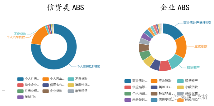 信貸ABS中,消費(fèi)類貸款類占總量的0.94%;企業(yè)ABS中個(gè)人消費(fèi)類ABS占總量的6.1%;ABN中,個(gè)人消費(fèi)貸款類ABN占總量的2.88%。企業(yè)ABS中個(gè)人消費(fèi)類貸款的比例較高,而信貸類ABS和ABN中消費(fèi)類資產(chǎn)發(fā)行量占比比較低。這也主要是因?yàn)樵谙餉BS的市場中,互聯(lián)網(wǎng)小貸平臺仍是消費(fèi)貸ABS發(fā)行主力。