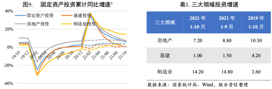 10月22日,財政部相關負責人在財政收支情況新聞發布會上表示,2021年新增專項債券額度盡量在11月底前發行完畢。聯合資信認為,11月專項債發行加速,為“今年底明年初形成實物工作量”提供資金支撐,基建投資會有所回升,但受制于地方政府債務管理和項目審批趨嚴等因素制約,預計上升幅度有限。