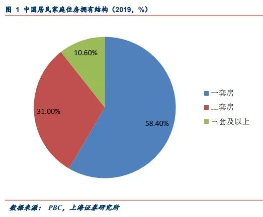 該報告還引述2019 年中國人民銀行發(fā)布的《2019年中國城鎮(zhèn)居民家庭資產(chǎn)負(fù)債情況調(diào)查》報告顯示,中國居民戶均擁有住房1.5套,有兩套住房的占比為31.0%,有三套及以上住房的占比為10.5%。如下圖。