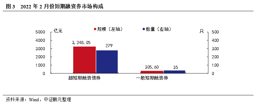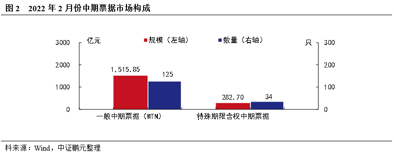 2月發行的中期票據中包括特殊期限含權期票據34只,發行規模282.70億元。2月發行的短期融資券中包括超短融(SCP)279只,發行規模3,248.05億元。