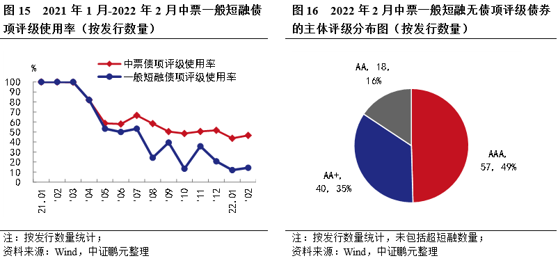 六、2月中票債項評級使用率為47%,一般短融債項評級使用率僅為14%