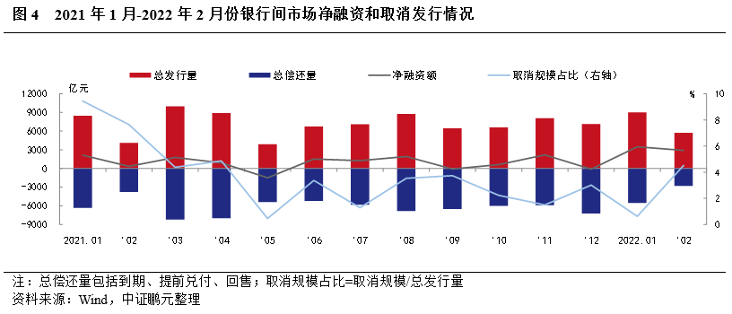 二、 2月份銀行間市場債券凈融資2,910.92億元,環比凈融資規模小幅下降