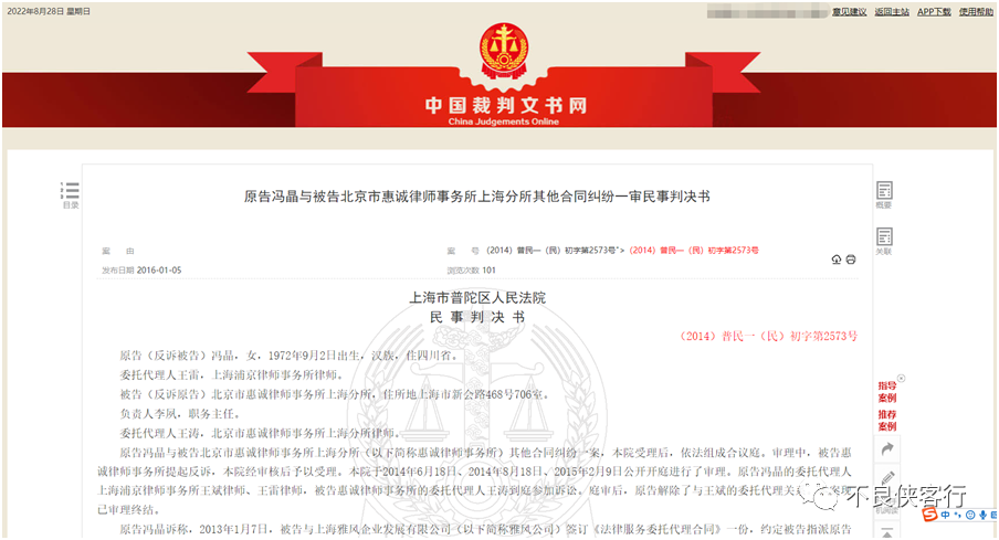 法律作為定紛止爭的工具,一個律師代理費用的審理,需要這么復雜嗎?一個有公平、正義、良知的人看完、聽完案件的整個過程,很快就會有判斷;一個沒有道義,唯利是圖的律所,必然會自取其辱,這世上除了法律還有道德與因果輪回呢。