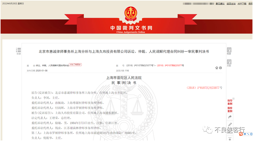 相較而言“強東性侵案”女主角的風險代理律師,真正做到風險代理,運用專業知識,為委托人服務,從而獲得高額的賠償金與女主角分享收益;而不是侵呑委托人的財產;兩者相較,高低立判!律師的信譽是生存之道,像北京惠誠律所上海分所這樣為錢財反噬委托人的的律所,還有何信譽可言?委托了這樣的律所,委托人只有瑟瑟發抖了。