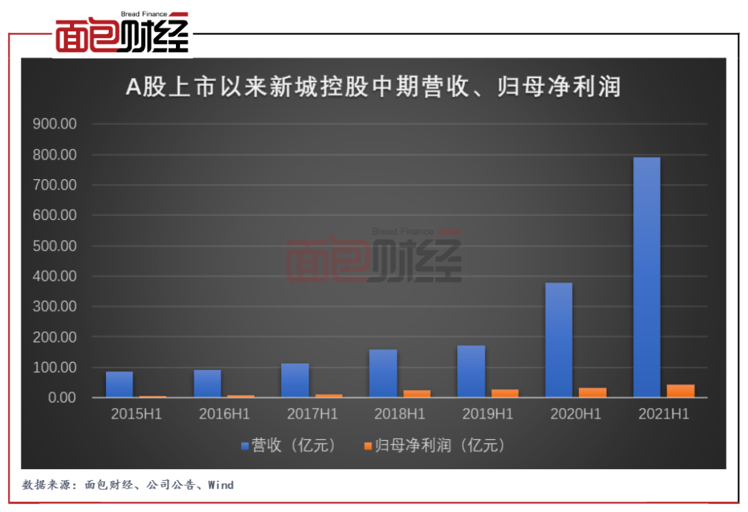 新城控股近日披露了一份頗為靚麗的半年報。數據顯示,公司報告期內分別實現營收、歸母凈利潤791.05億元和43.06億元,兩者均創上市以來新高。