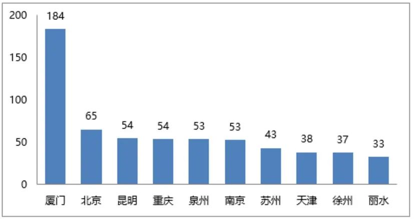 從城市分布來看,二線城市中以廈門、昆明及重慶的合同銷售表現最為突出,分別約184億元、54億元及54億元