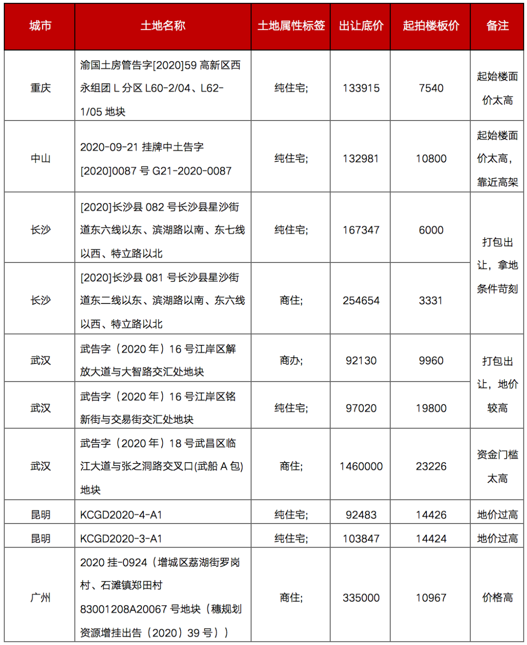 圖:2020年10月重點監測城市流拍地塊原因分析