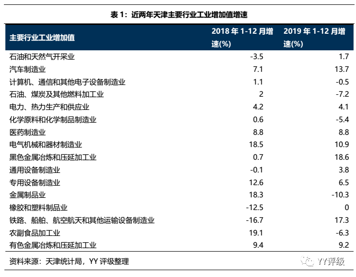 鋼鐵行業也受到“環保限產”影響,2019年5月印發的《2019年度打好污染防治攻堅戰工作計劃》指出,“突出單位面積排放強度管控”,市7家鋼鐵集團保留4家,推動江天重工、天豐鋼鐵、軋三鋼鐵整體退出。環保限產來襲,工業跳水,暴露了天津產業結構重工業占比高的短板。