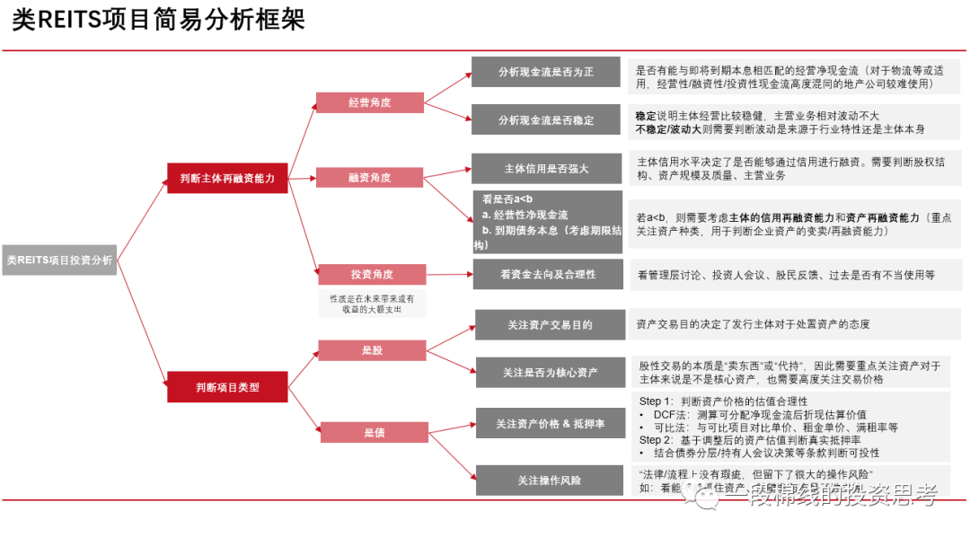 目前類REITs項目里,由于全市場整體缺乏能夠承接資產并開展高效運營的獨立第三方實體,判斷主體再融資能力就是個極其重要的問題。