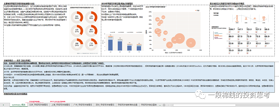 為了開展合理判斷,就需要對細分資產市場提前進行了解和持續跟蹤觀察。筆者在前一份工作開始就對寫字樓、購物中心、物流等典型商業物業資產進行了持續性信息收集工作。盡管公開信息往往不能直接指導具體交易的定價,數據也往往有滯后性,但連續的數據觀察仍然會給具體交易帶來很多啟發,也會避免對特定市場投資出現大方向上的偏差。也就是前面提到的,有助于幫助自己“早一輪起身”。