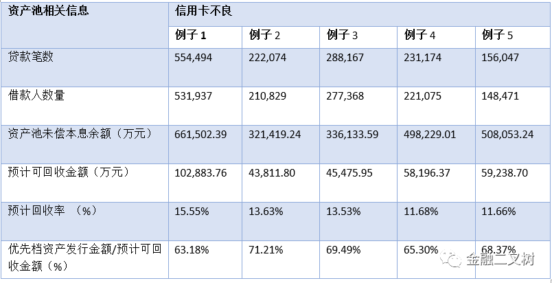 損失是質量相較最差的一類資產,那么為什么信用卡類的損失類資產占比多但是發(fā)行利率又不會太差呢?這里是小編舉得個例,但小編通過對比分析發(fā)現,相似條件下信用卡類不良ABS的利率比其他類要低的,而基礎資產中損失類的占比也相較其他類多一些,這是因為信用卡類不良資產筆數多、債務人分散,現金流只能依靠借款人主動償還和催收機構催收,一筆款項只要逾期期限較長,現金流回收情況就會變得很差。