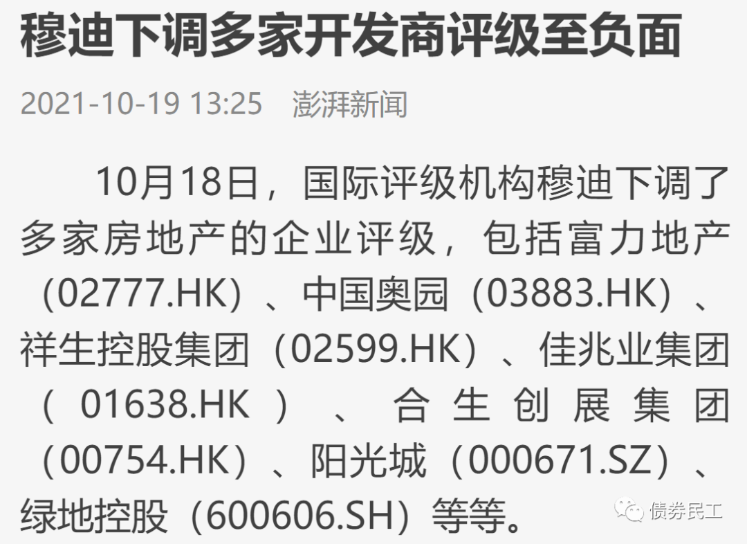 2021年10月18日,穆迪對多家房地產公司的主體評級或展望進行了負面調整,讓房地產公司面臨了更大的壓力。