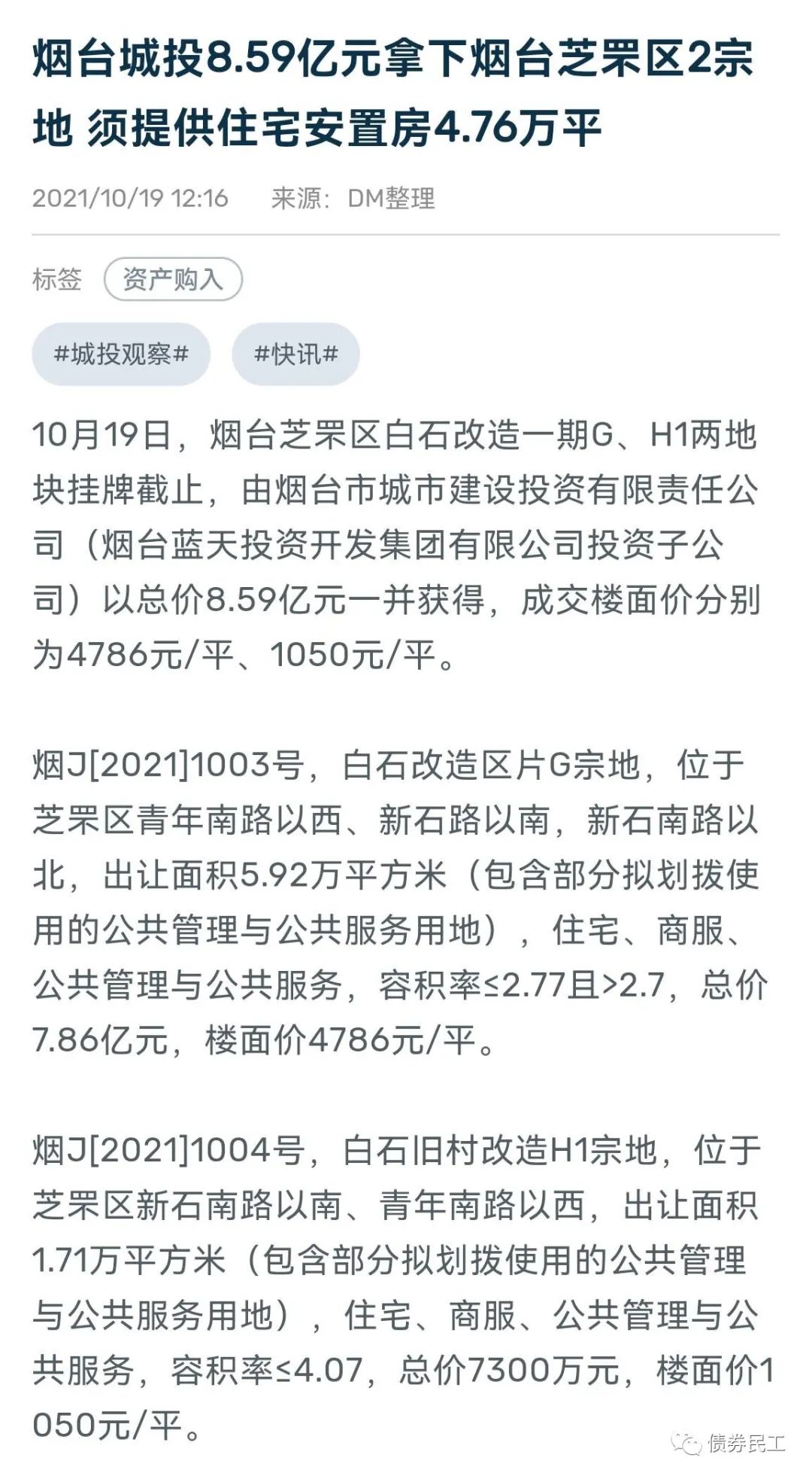 2021年10月19日,煙臺市城市建設投資有限責任公司的子公司以5.89億元的價格摘得煙臺市芝罘區總出讓面積為5.92萬平方米的土地,包含住宅、商服公共管理與服務用地。