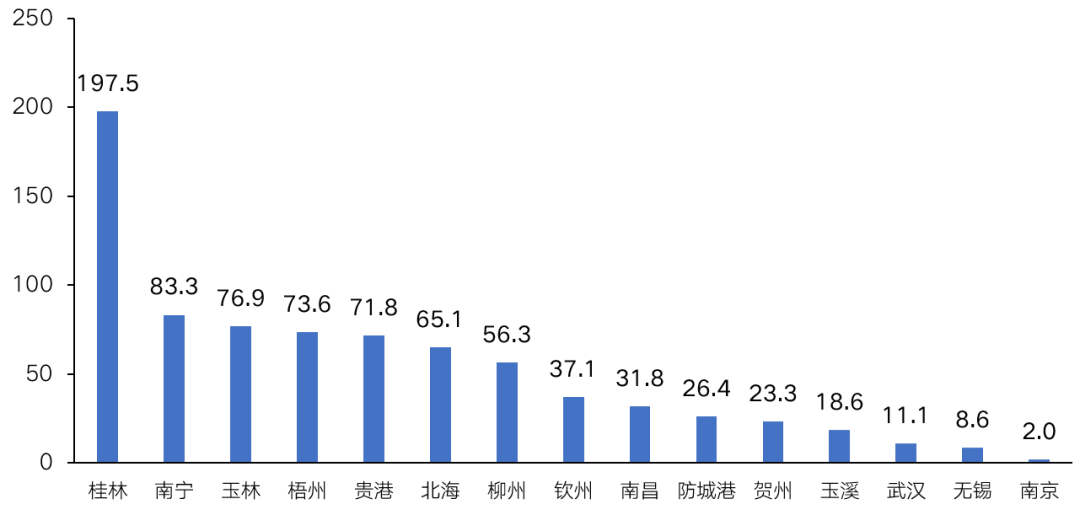 據公告披露信息顯示,此次收購涉及目標項目共57個,包含54個開發項目及3個代建項目,總計容未售建筑面積為825.17萬平方米。其中,54個開發項目計容共計未售建筑面積783.33萬平方米,90.8%位于廣西各城市核心區域,主要分布在桂林、南寧、玉林等城市,且以住宅為主,流動性強。