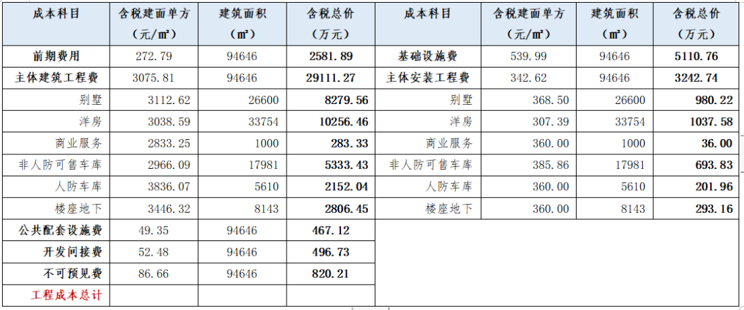 工程成本通常包括:前期工程費(fèi)、主體建安工程費(fèi)、景觀環(huán)境工程費(fèi)、社區(qū)管網(wǎng)工程費(fèi)、公共配套設(shè)施成本、工程建設(shè)其他費(fèi)用以及開發(fā)間接費(fèi)等。