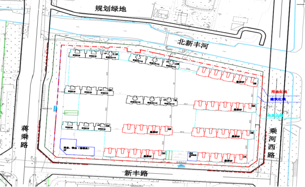 在總用地及目標(biāo)容積率確定后,簡單用方程式模型來確定低、高層的用地分布,并確定住宅區(qū)分布位置;同時通過市場調(diào)研和競品分析等得到各業(yè)態(tài)的建議配比及戶型配比。通過不斷的調(diào)整,得出詳細(xì)的強(qiáng)排方案圖及規(guī)劃指標(biāo)表。