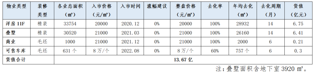 包括各個業(yè)態(tài)可售面積以及相應(yīng)的售價、預(yù)測產(chǎn)品的去化比例(參照自家公司或者周邊對標(biāo)競品取值)、預(yù)測銷售回籠比例(參照每家公司的歷史經(jīng)驗(yàn)值)。