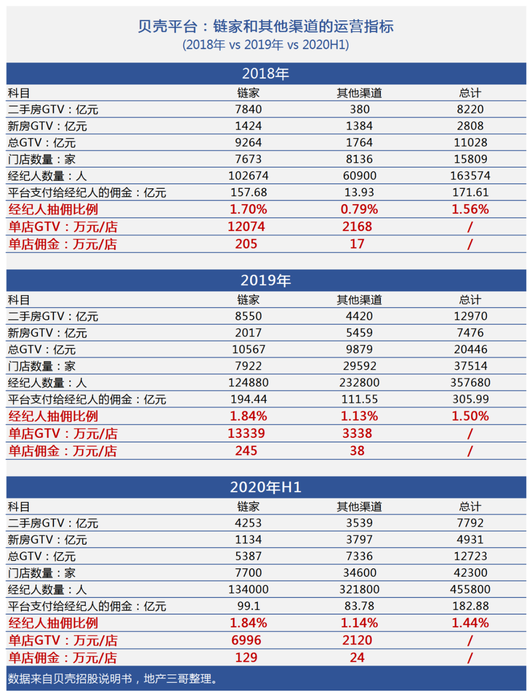 2020上半年,貝殼支付給外部渠道的單店傭金24萬元/半年,單店人數9.3人,折算外部經紀人年收入5萬元,這還沒有扣除店鋪租金和老板的分紅。