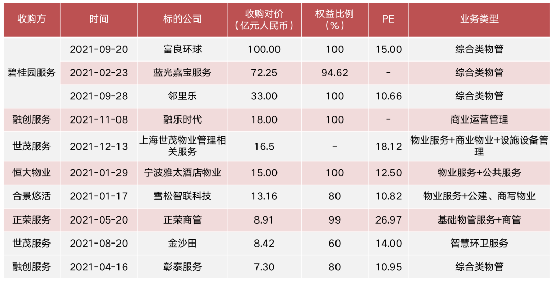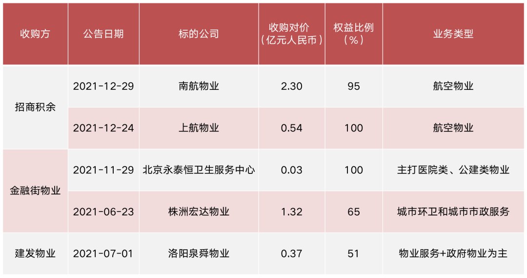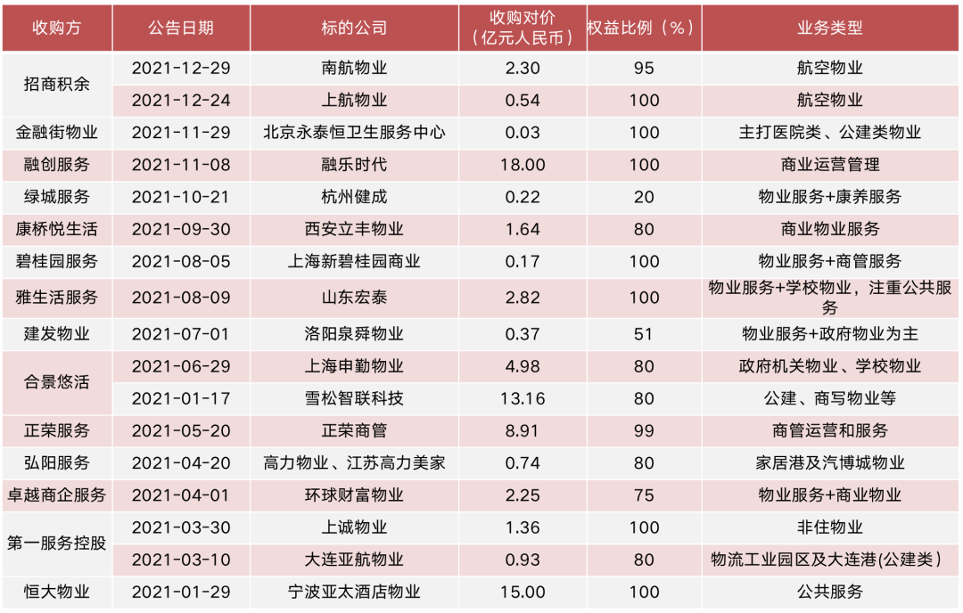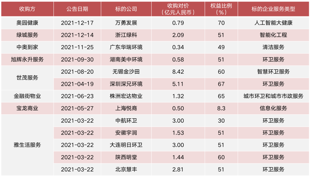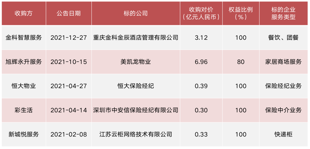 圖:2021年以來(lái)上市物企在增值服務(wù)領(lǐng)域收并購(gòu)事項(xiàng)一覽