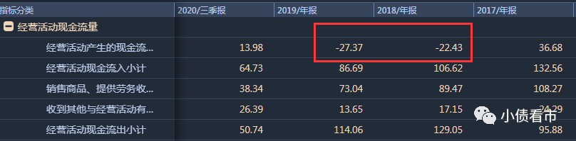 值得注意的是,業績爆雷的同時,2018和2019年云南城投經營獲現能力也持續惡化,經營凈現金流分別流出22.43億和27.37億元。
