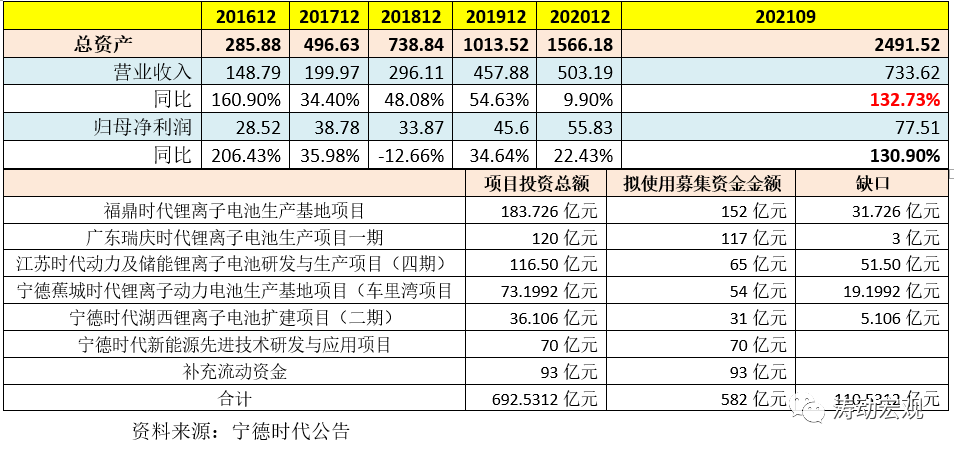 3、此次定增擬投項目的資金仍有110.53億元的缺口,寧德時代計劃擬通過自有資金、經(jīng)營積累和銀行借款等方式給予解決。