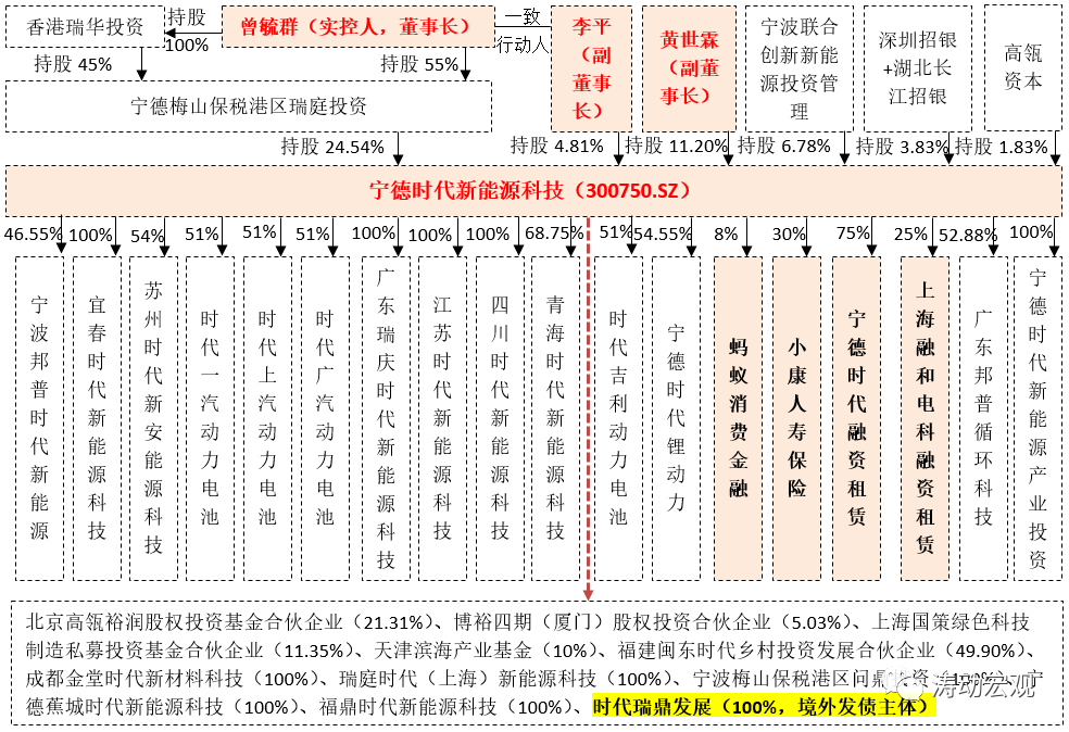 1、畢業(yè)于中科院物理研究所的曾毓群為寧德時代的創(chuàng)始人,位居2021年胡潤中國百富榜第三位,目前擔任寧德時代的董事長并為其實控人,主要通過寧德梅山保稅港區(qū)瑞庭投資來實現(xiàn)對寧德時代的控制,合計持股比例達到24.54%。