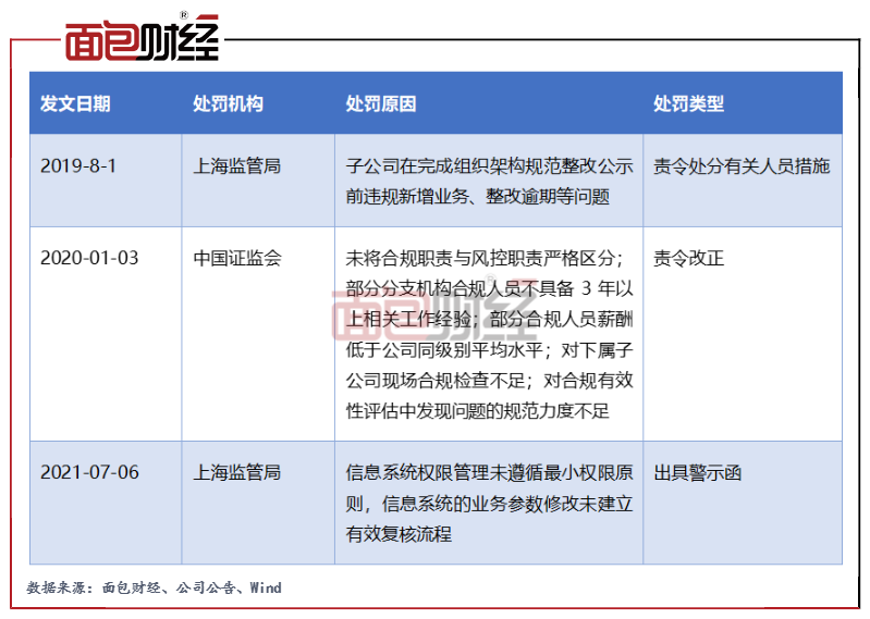 此外,2019年至2021年,東方證券多次因內控制度存在漏洞,收到證監會和上海監管局的處罰。