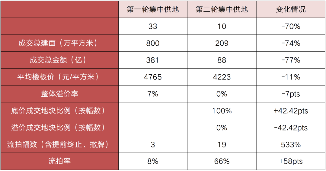 “核心城市第二輪集中土拍已經接近尾聲,截止目前,重點城市第二輪集中土拍僅剩寧波和鄭州尚未完成,與首輪集中土拍多個城市出現競拍高熱現象不同,第二輪集中土拍的重點城市熱度較首輪均有下降,溢價率、流拍率等熱度指標表現均不佳。