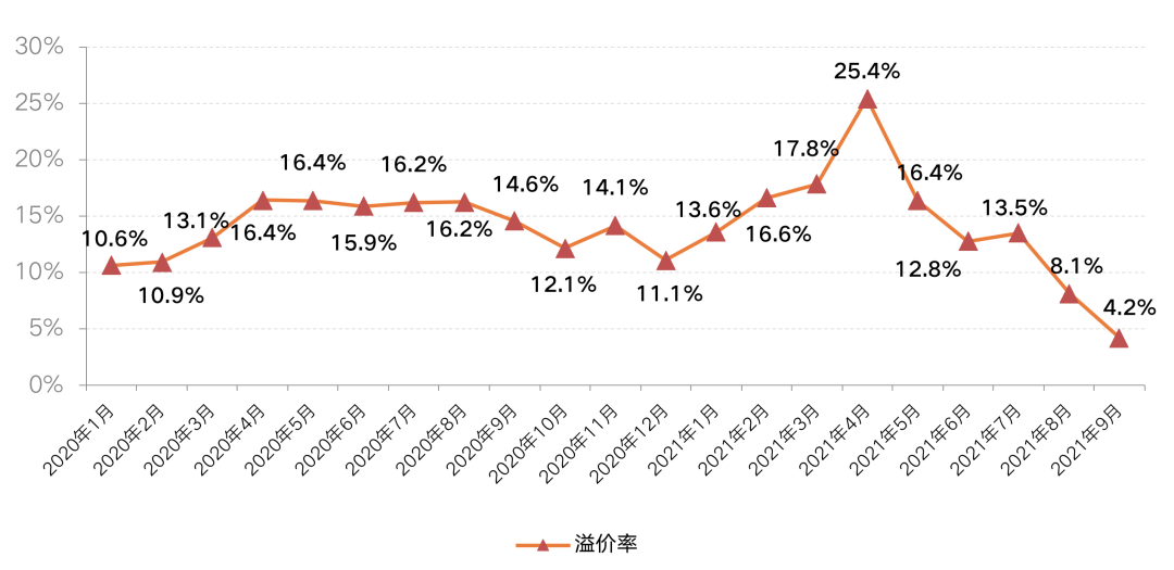 圖:CRIC監測城市經營性用地溢價率走勢圖