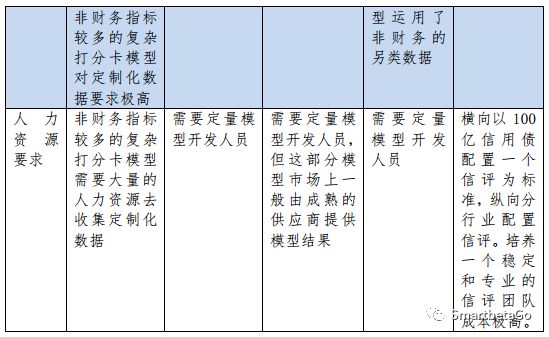 筆者愚見,目前咨詢公司、系統廠商和其他一些供應商提供內評模型時以打分卡模型為主,簡單的打分卡模型以財務指標打分為主,這類型的模型筆者以為價值不大?;谝蚬P系和研究框架、并通過信評專家、定價數據、外評數據、違約案例等等方式來校準排序后的復雜打分卡模型價值稍大些,但這類型的復雜打分卡模型需要全覆蓋、高質量、有歷史切片、定制化程度高,且可持續更新的數據為基礎,目前極少數咨詢公司可以提供此類的解決方案和數據基礎。