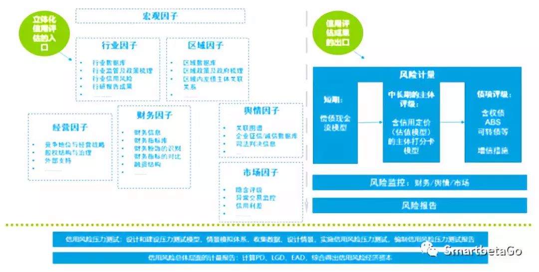 三、管理機制通過十個模塊的合力,達到監管要求的可監測、能計量、能分析、可應對。而其中核心的是通過立體化內評體系提升前臺信評的風險識別和風險計量能力、輔助中臺信用風險管理工作。