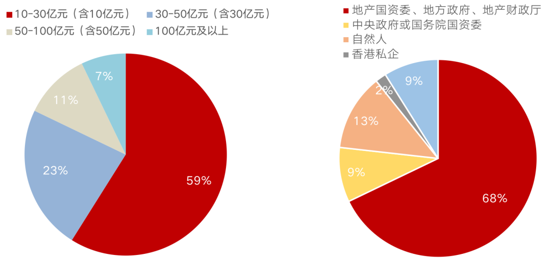 相較于全國性AMC完全受政府的掣肘,地方AMC股權結構上更為靈活,近68%的地方AMC實際控制人為省級政府,13%的地方AMC實控人為自然人,9%的地方AMC股權分散無實控人,其中不乏有企業參股以便未來更好地開展業務合作。但地方AMC資金實力較弱,注冊資本100億元以上的僅占7%。