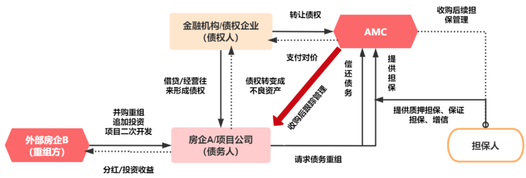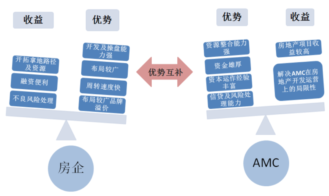 而AMC則可以借助房企進行項目開發,化解自行開發的局限性,或者在為房企進行融資服務的過程中,獲取利息收益。