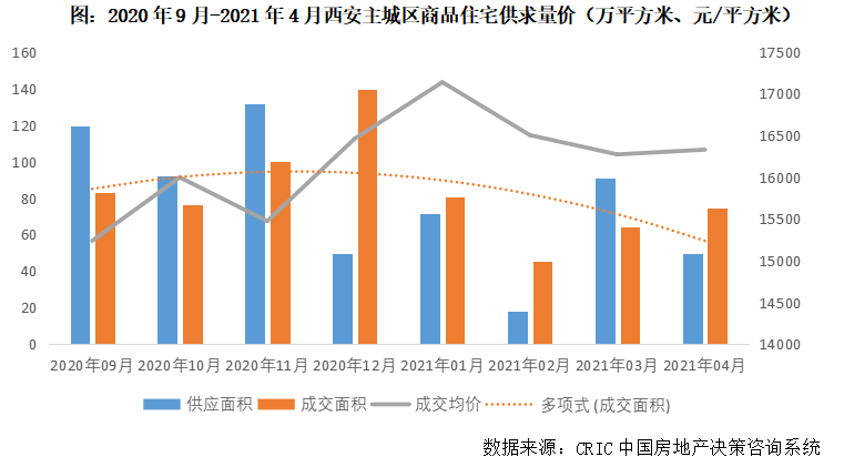 2020年11月底,西安升級限貸,依據(jù)住房面積段分檔提升二套房首付比例,最高首付比例達(dá)70%。2021年3月底,西安再次升級調(diào)控,涉及新落戶家庭需落戶滿1年且連續(xù)繳納1年社保,才能在限購區(qū)域購房;住房限售年限提升至5年等。短期內(nèi),市場觀望情緒再起,部分購房需求被迫延期乃至擱淺。