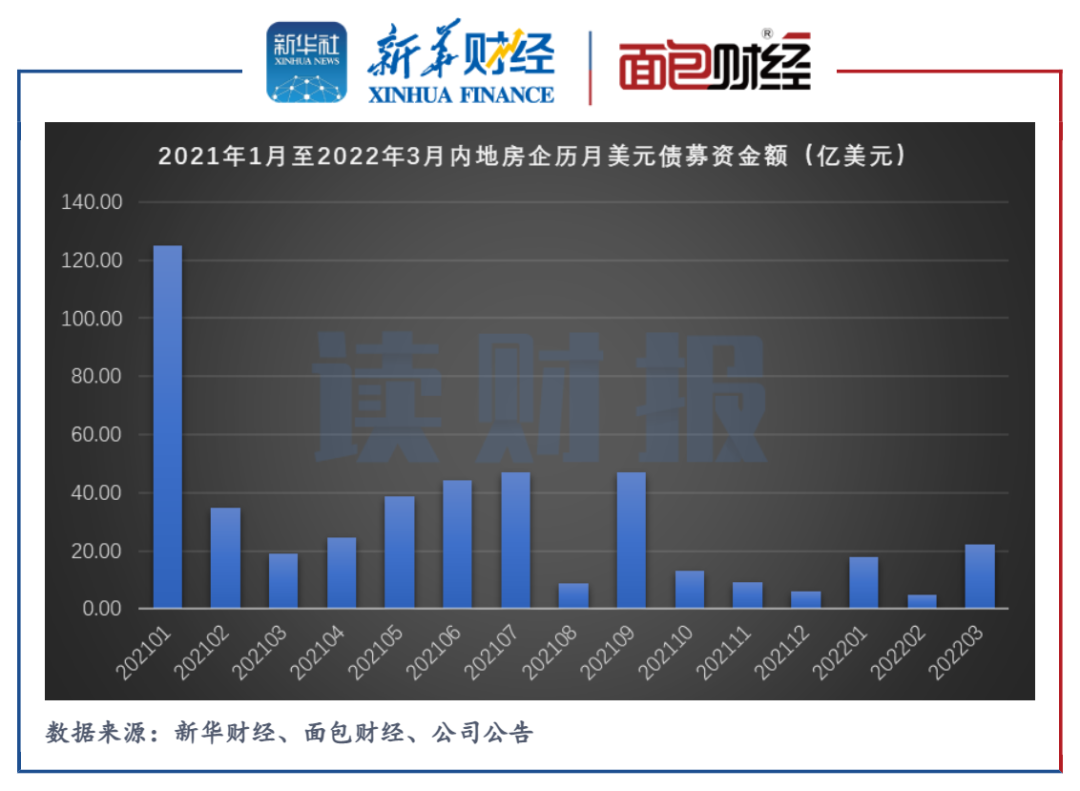 圖3:2021年1月至2022年3月內地房企歷月美元債募資金額