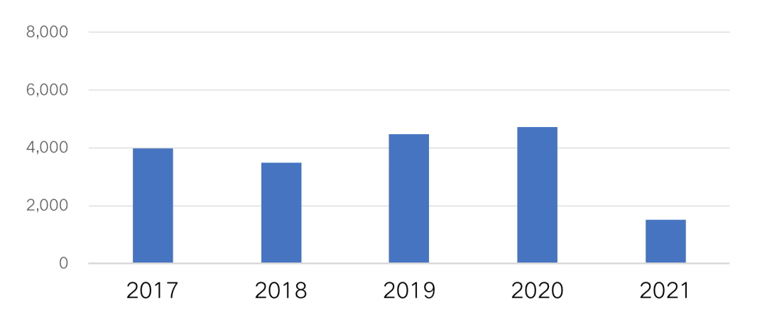 圖:2017-2021年7月房企海外債總額(億元人民幣)