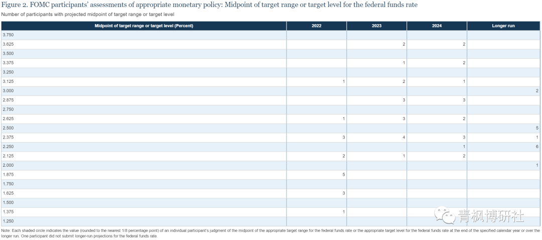 從加息幅度上看,預計年內加息幅度會達到150BP左右,聯邦基金目標利率預計會達到2%附近。