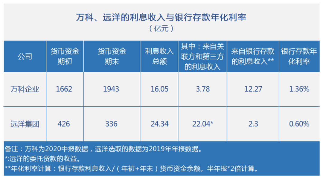 為什么?因為遠洋集團的利息收入中包括22.04億元的對外委托貸款產生的利息收入,除此之外,其同期銀行存款利息收入2.3億元,以此推算,年化的銀行存款利率是0.60%。