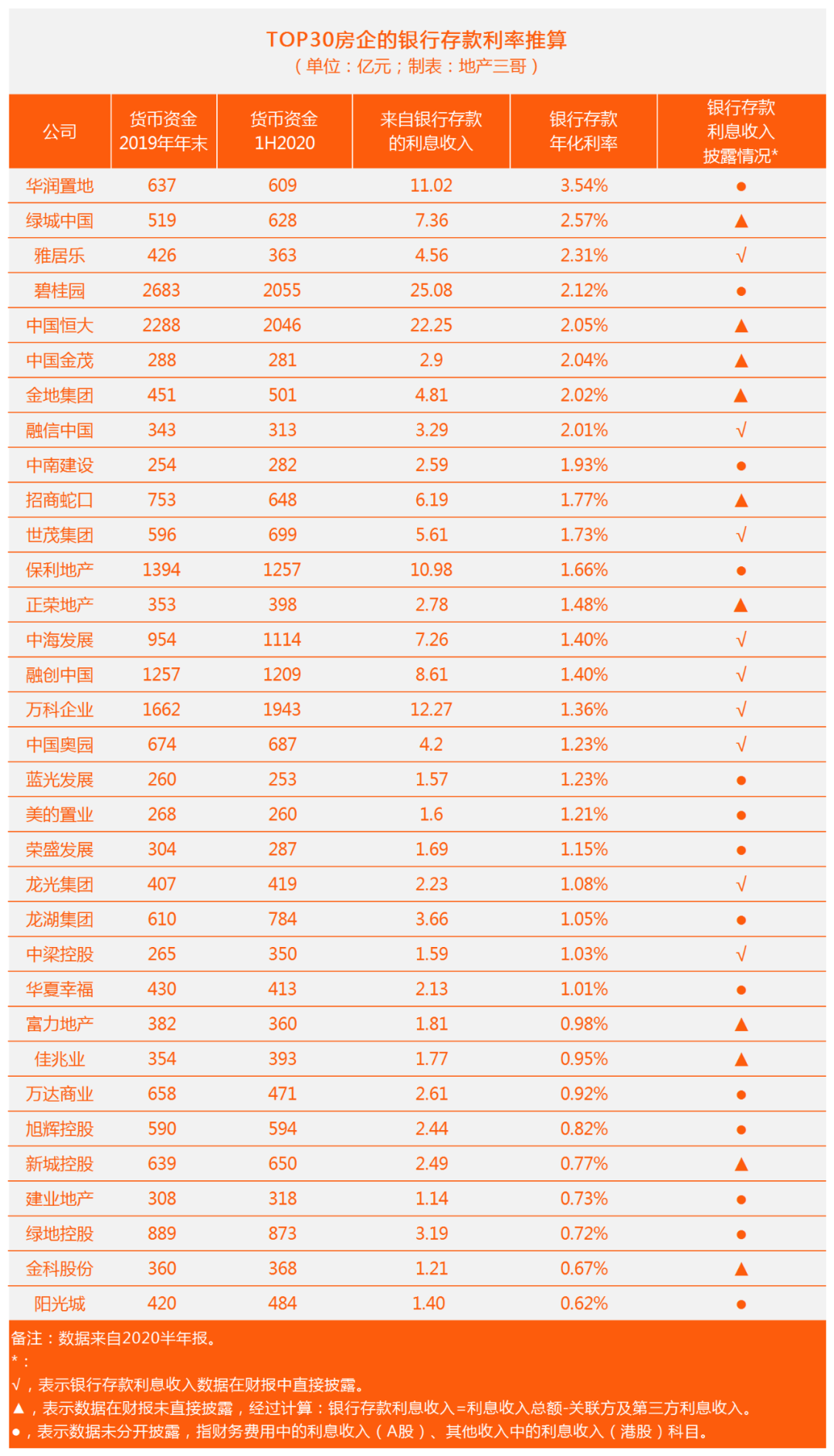 原標題: TOP30房企的銀行存款利率
