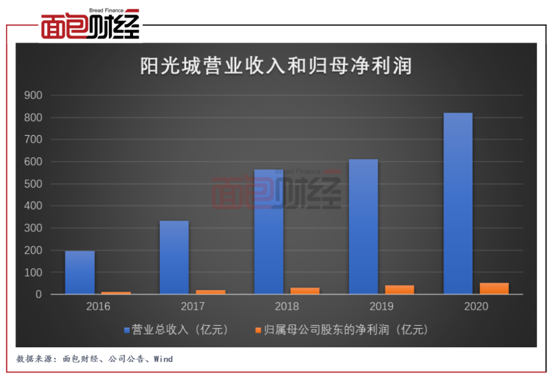 年報顯示,陽光城2020年實現營業收入同比增長34.60%,歸母凈利潤同比增長29.85%。