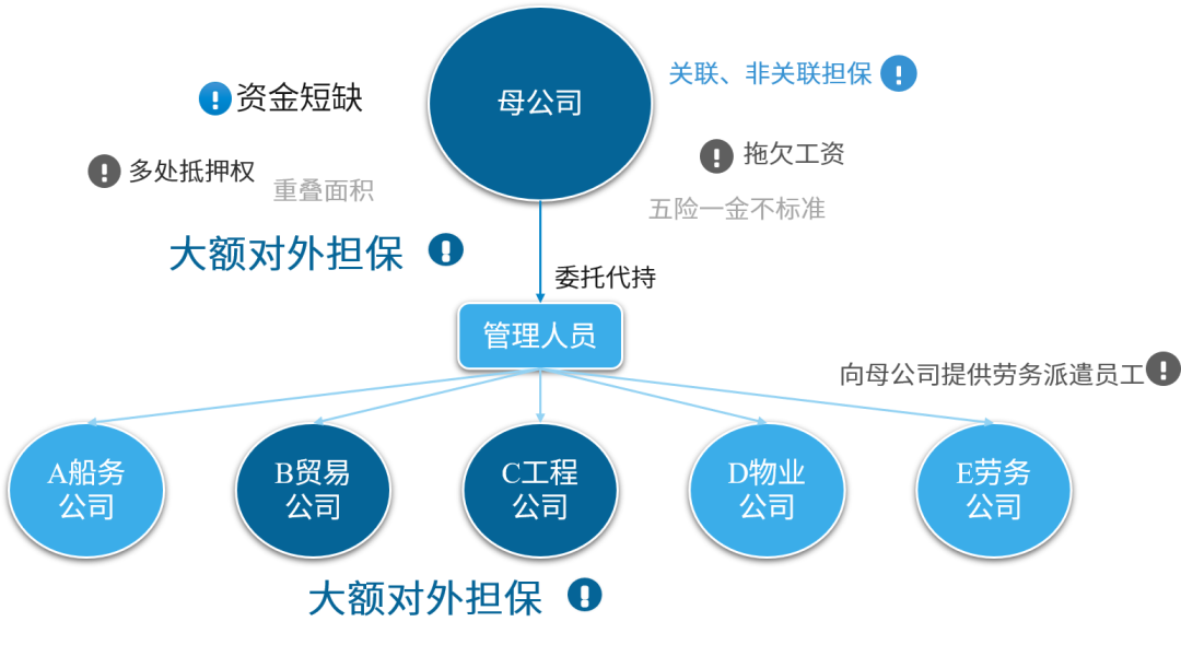 (5)目標公司對外擔保數(shù)額巨大,且 B 貿易公司、C 工程公司也有大額對外擔保。