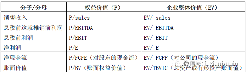 價值比例在可比企業(yè)與待估企業(yè)的價值之間建立了一座橋梁,能夠更好的反映價值,則取決于選取價值比率的關(guān)鍵。目前常采用的價值比率類型主要包括如下幾類: