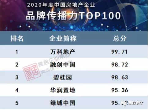 通過房企品牌來評價房企,主要是基于銷售端部分消費者對于大品牌的開發商依舊存在一定的信賴度和房企本身的品牌價值等因素,以下為部分房企的品牌排行榜。
