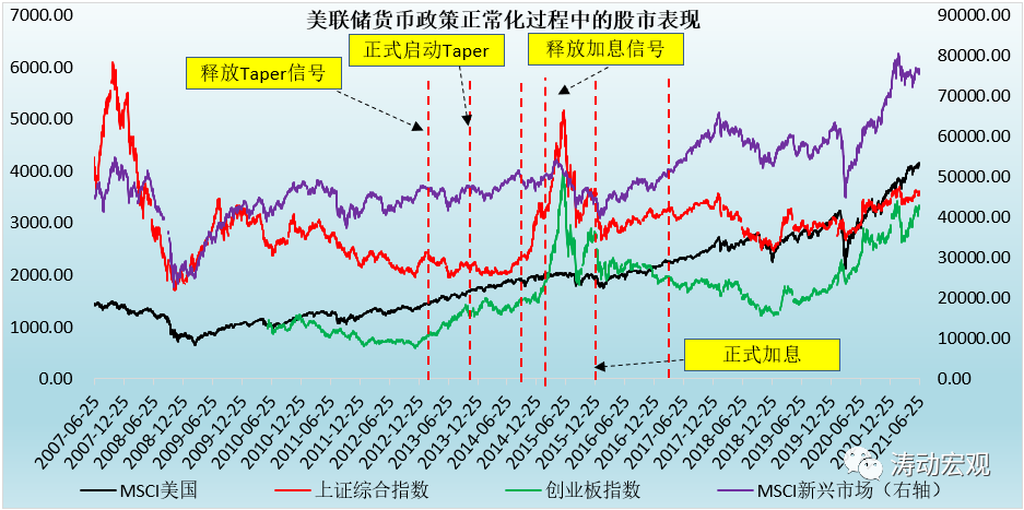 2、而在Taper以及加息的預期過程中,受資本外流、本幣貶值等因素影響,新興市場股市的波動幅度有所擴大,且傾向于下挫。