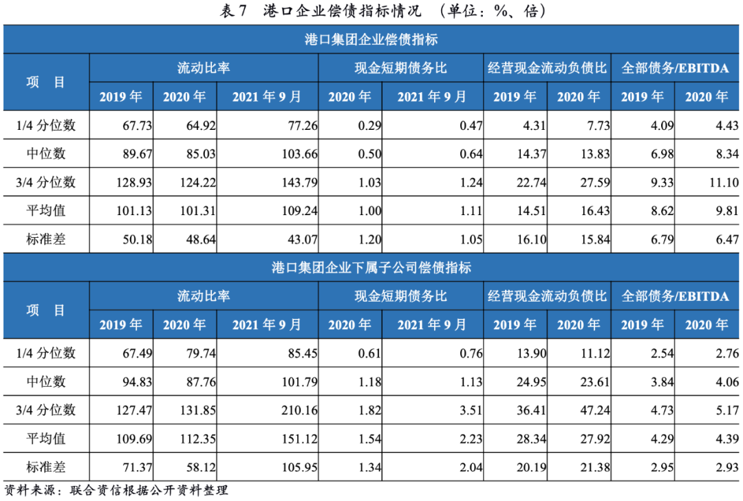 港口企業償債能力指標整體有所改善,整體處于較強水平,但仍需關注部分港口企業的短期償付壓力。