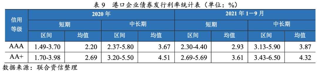 2020年二季度以來,市場流動性邊際趨緊,港口企業短期發行利率整體呈波動上升趨勢,長期發行利率較為平穩。