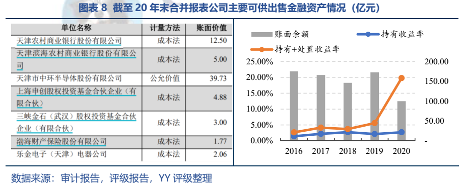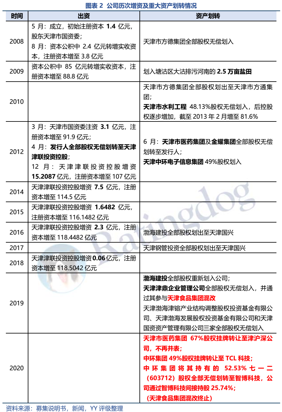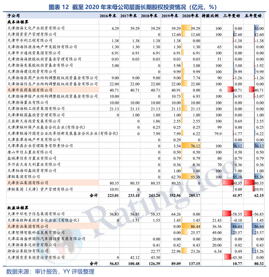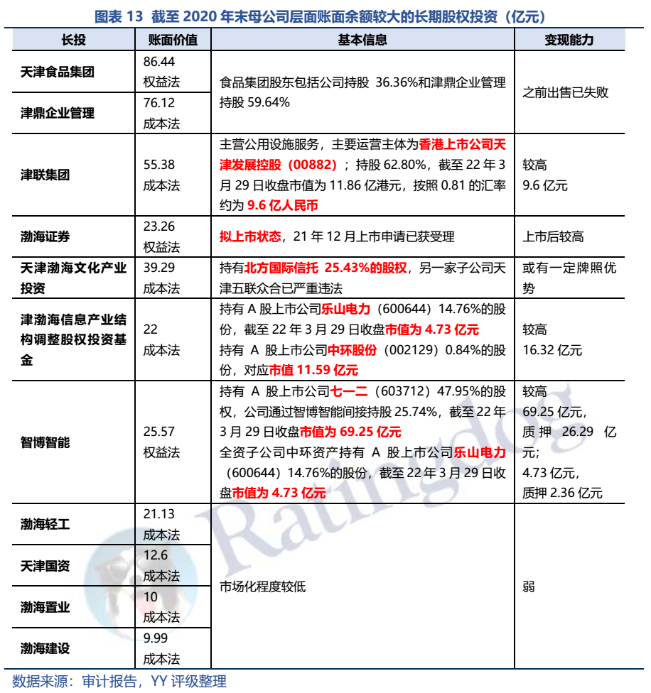 公司為天津市整合級國資運營平臺,子公司股權多依賴劃轉等,實際掌控力偏弱;此外區(qū)域為了化解泰達的債務風險,將公司股東津聯投資控股100%股權劃入泰達控股下。公司混改的股權轉讓款約90億元流向泰達,而泰達自身的風險警報尚未解除,對公司資質有一定拖累。