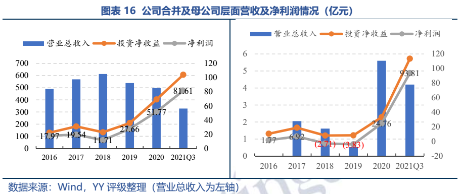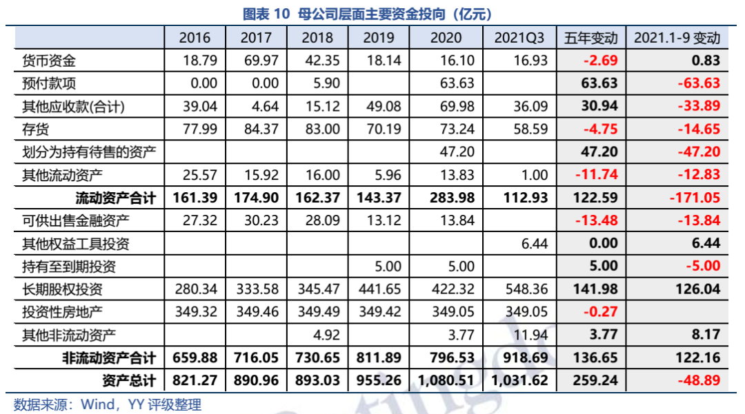 母公司層面,依賴子公司運營為主,本部僅為融資屬性,營收較少,利潤依賴于資產處置。母公司資產集中在長股投和投資性房地產上,投資性房地產主要是2.5萬畝鹽田,短期變現能力弱。長股投規(guī)模持續(xù)增長,但多數市場化程度低,市場化程度較高/變現能力較強的合計約71.25億元。