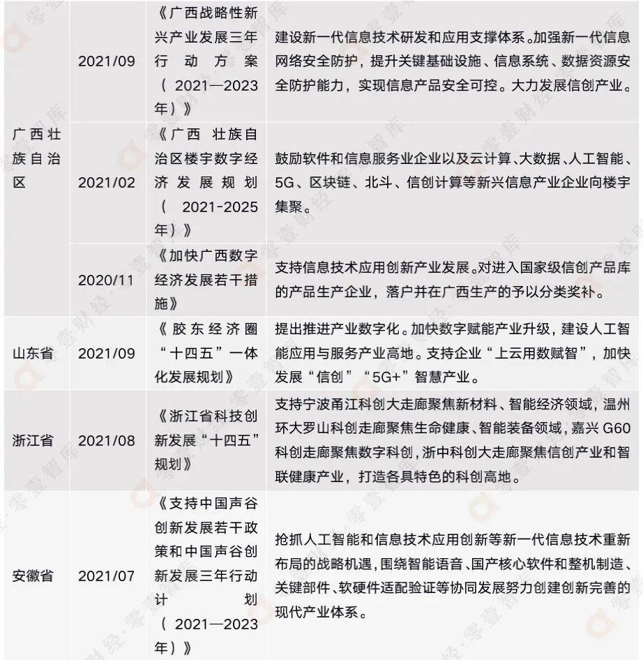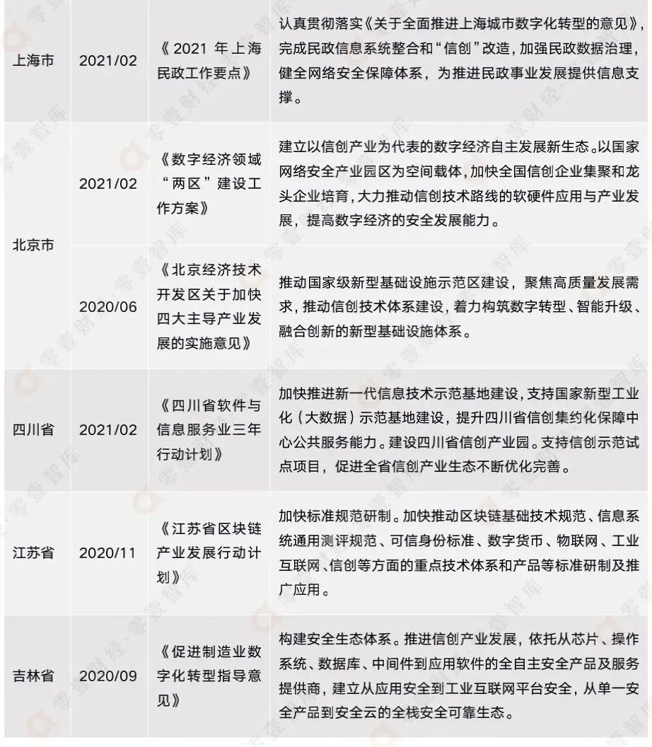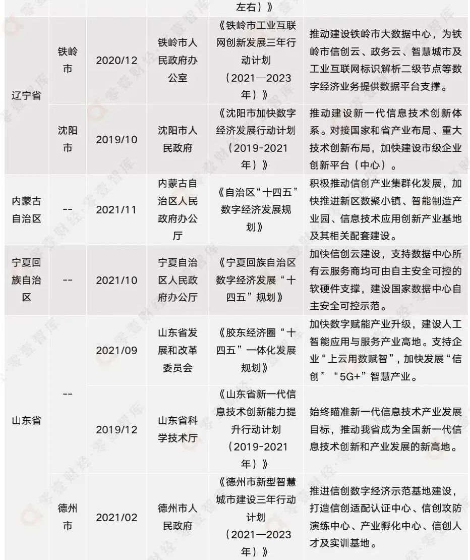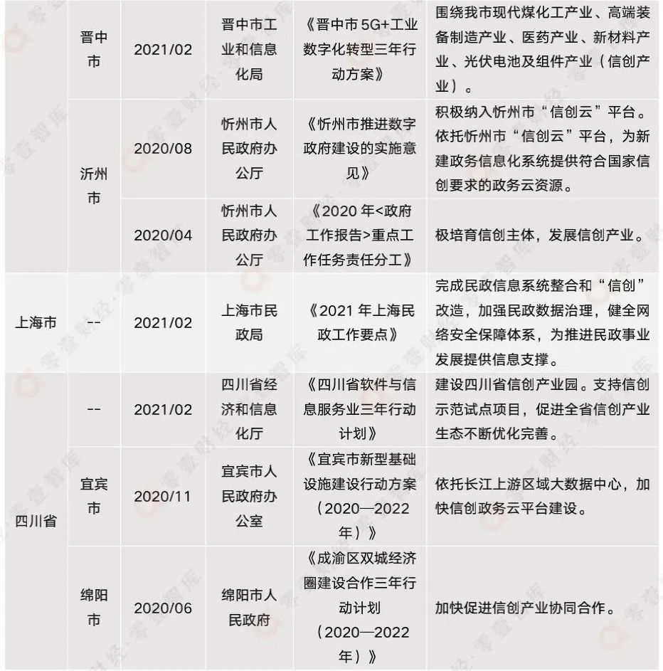 附錄二:全國各省市信創(chuàng)相關政策匯總(截至2021年12月)