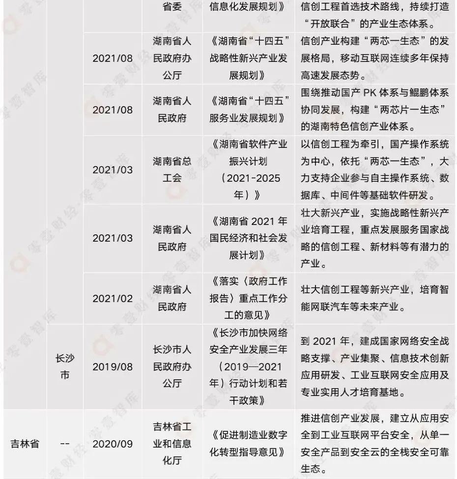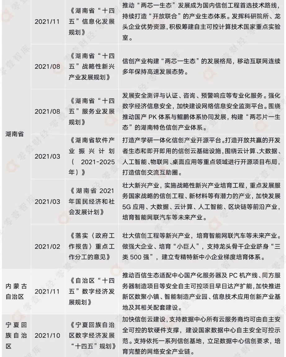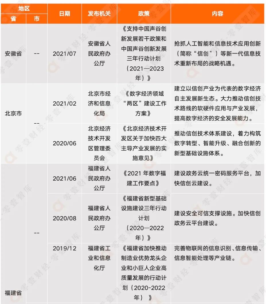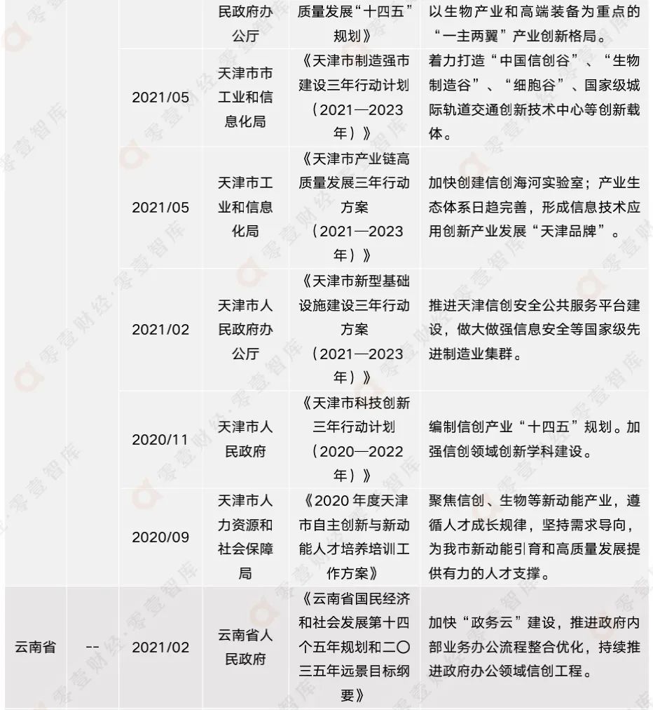 附錄二:全國各省市信創(chuàng)相關政策匯總(截至2021年12月)